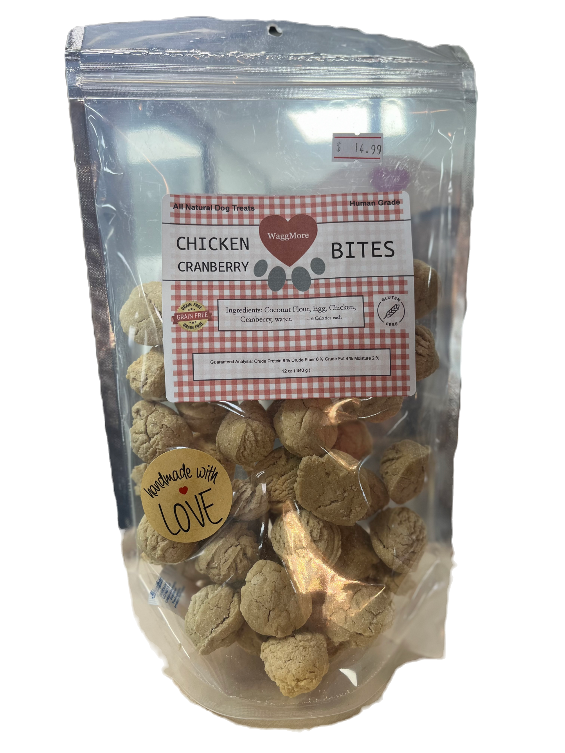 Ground Chicken, Egg, Coconut Flour, Cranberry, Water.